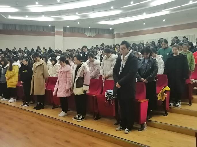 2019年12月13日,距离南京大屠杀82年,在第六个国家公祭日之际,为悼念在南京大屠杀中不幸遇难的同胞,弘扬爱国主义精神,进一步激发同学们的爱国热情和矢志报国的信念,太阳成集团tyc7111cc主页在校3号报告厅举行了“勿忘国殇,奋进青春”主题爱国主义教育活动。学院辅导员、19级全体学生、学生党员、各团支部书记、团学干部共计350余人参加。