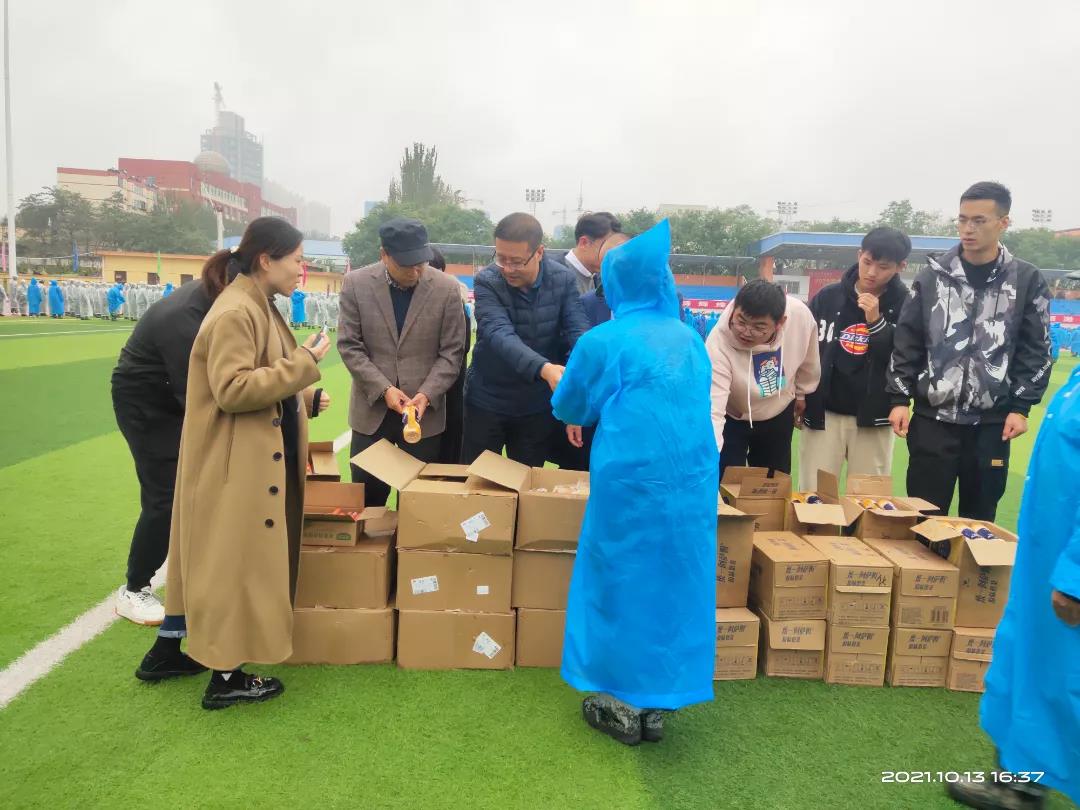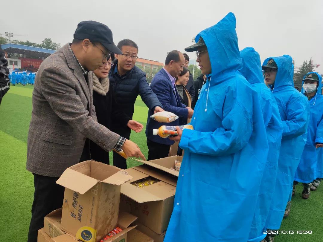 10月13日下午,太阳成集团tyc7111cc主页党总支书记王小芳、党总支副书记刘正、副院长李志峰、副院长杨玲娟、辅导员和学生干部在东操场对我院2021级军训学生和教官进行了慰问。