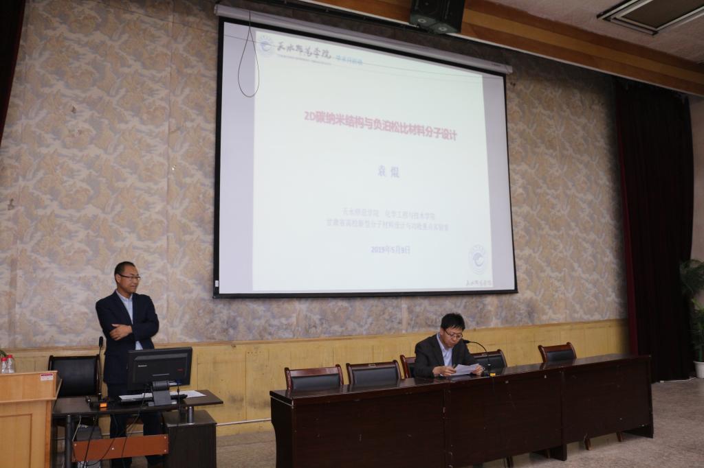 5月9日下午,由科研管理处主办化工学院承办的学术月活动之校内教师讲坛在1号报告厅顺利开讲,我院青年博士袁焜作了题为碳纳米结构与负泊松比材料分子设计报告。