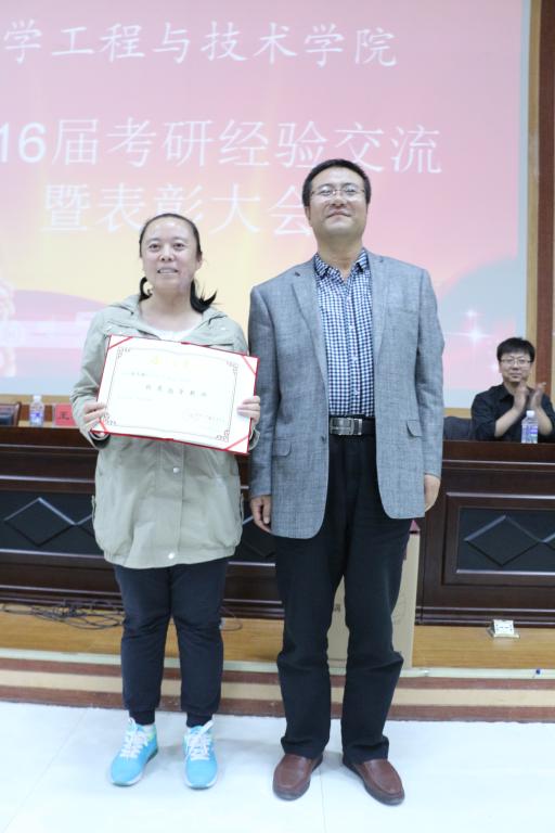 首先,由雷新有副书记对2016年我院考研情况做了简介。之后,参加此次大会的考研优秀学子为学弟学妹们分享了自己的考研心得和体会,并结合考研经历详细地讲解了备考前期的准备工作和备考期间应注意的事项,为准备考研的学弟学妹们指点迷津。接下来,学院对优秀毕业生、考研之星、考研优秀宿舍及考研优秀指导教师陈冬梅老师进行表彰并颁发奖品证书。最后,刘新文院长做了总结讲话,刘院长对考研成功的56位同学表示了祝贺,同时希望更多的同学能志高存远,立志考研。