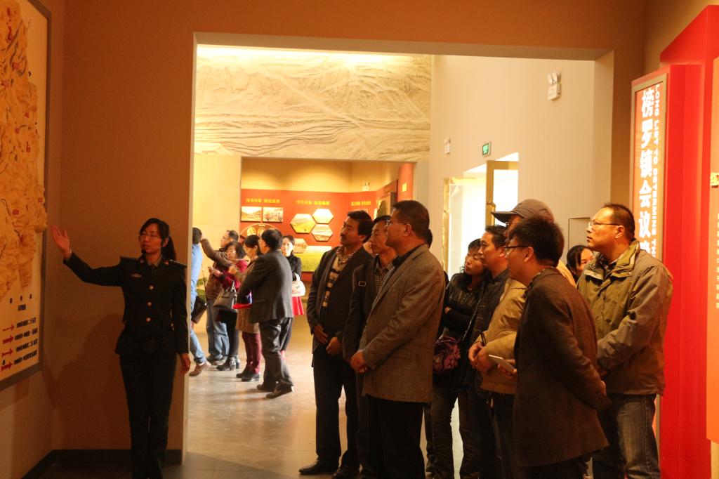 化工学院党员及部分教职工参观了榜罗镇会议纪念馆、榜罗镇会议旧址、毛泽东和张闻天旧居、革命文物陈列室,认真了解了榜罗镇会议的背景、会议经过和取得的历史性成果。2009年落成的纪念馆以弘扬伟大的长征精神为主题,通过翔实的史料、图片、图表、实物,综合运用各种现代高科技手段,精心设计布局,全面展现了中国工农红军红25军及红一、二、四方面军在长征途中过境通渭时的历史画卷。在展览馆中陈列着红军使用过的磕碰得变了形的水壶,锈迹斑斑的子弹、飞机炸弹、手雷,被红军战士的手和肩磨得溜光的扁担、背篓以及提篮等一件件珍贵文物,还有那些书写在墙上、门窗上字迹斑驳的各种革命宣传标语,这些遗物铭刻着一段红色的记忆,让我们的思想穿越岁月的风烟,重温那段战火纷飞的岁月。