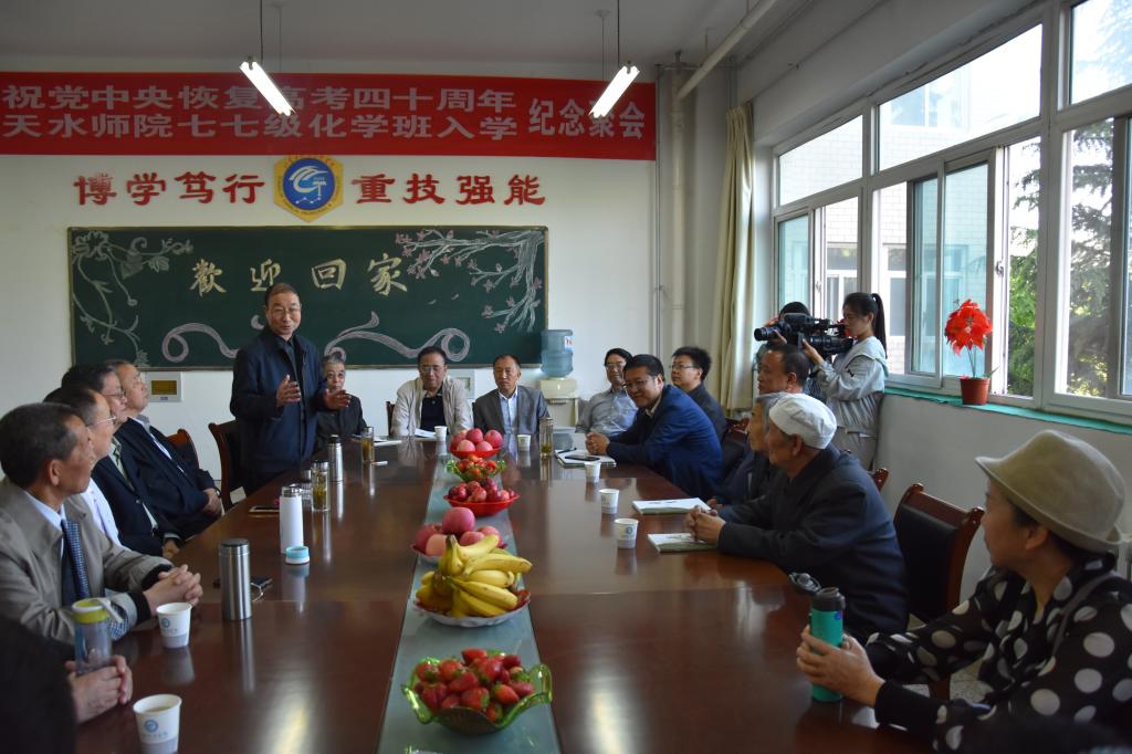 五月的天水师范学院天朗气清、风和日丽,欢声笑语、情深意浓。在这美好的日子里,天水师范学院太阳成集团tyc7111cc主页迎来了党中央恢复高考后化学系77级师生的40周年聚会。校友联谊会主任崔宝珍、化工学院党总支书记王小芳、副院长吕玲玲出席座谈会。