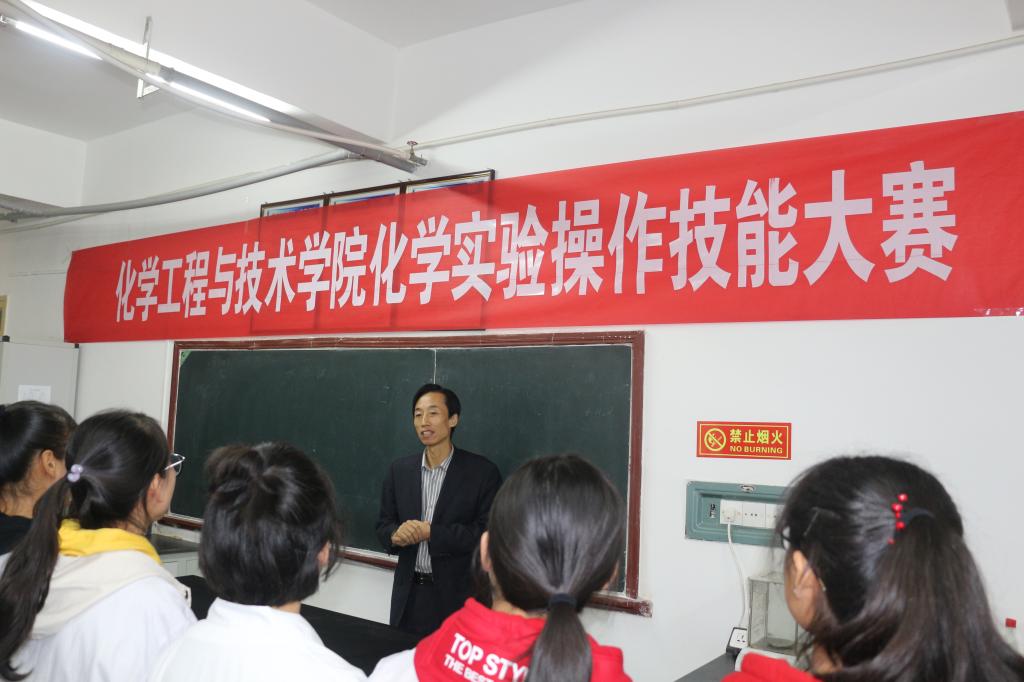 刘新文院长首先致词,他指出化工学院举办化学实验操作技能大赛旨在推动化学实验教学改革,推动设计性、综合性、创新性实验教学的开展,检验实验教学改革成果,提高大学化学实验教学质量;通过比赛引导学生加深对化学理论基础的理解和运用,强化化学基础理论与实践的结合,提高大学生的综合能力和实践能力,培养学生的创新精神和团队协作意识。