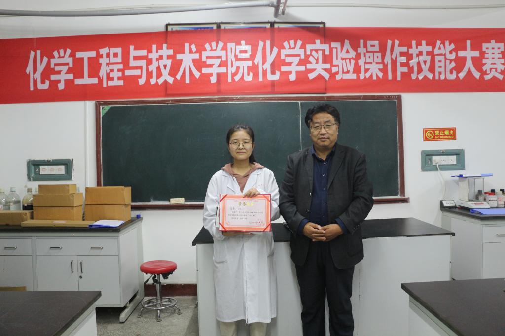 化工学院党总支副书记雷新有与一等奖张凯合影