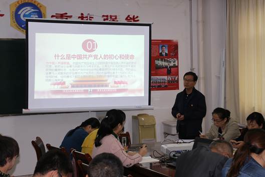 会议首先集体学习了学校主题教育动员部署大会上李正元书记的讲话。随后,化工学院党总支书记王建斌同志以“中国共产党人的初心和使命”为主题讲了党课。他从什么是中国共产党人的初心和使命,为什么要不忘初心、牢记使命,如何做到不忘初心、牢记使命三部分进行了宣讲。王建斌同志讲到,习近平总书记多次指出:“中国共产党人的初心和使命,就是为中国人民谋幸福、为中华民族谋复兴”,这一论述,彰显了我们党永远不变的性质、宗旨和奋斗目标,凸显了中国共产党人矢志不渝的担当精神。这个初心和使命是激励我们党不断前进的根本动力,是我们党奋斗历程不变的主题,也是我们党应对挑战的思想武器。他强调我们要坚持以习近平新时代中国特色社会主义思想武装头脑,坚持把人民对美好生活的向往作为奋斗目标,践行新时代“四个伟大”的历史使命。最后,王建斌书记要求广大党员,务必坚定理想信念,继承磐石般的革命意志,发扬立党为公、忠诚为民的奉献精神,从平凡的小事做起,关心同事、爱护同学,以更好的精神面貌、更高的政治素质为我院的发展做出贡献。