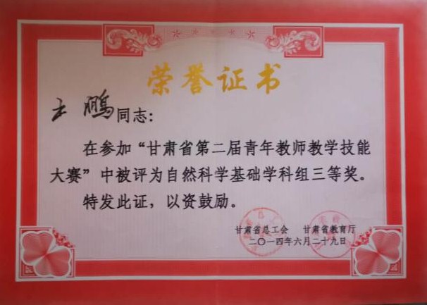 近年来,学院在新进青年教师中实施“青年教师培养导师制”,使青年教师尽快熟悉教学过程,成长为教学能手。鼓励年轻教师攻读博士学位,十三五期间,共引进博士13人,4位教师获评正高级职称,2位教师获评副高职称,3位教师攻读博士学位。1人入选教育部“新世纪人才”,2人被聘为甘肃省“青年飞天学者”,1人入选甘肃省领军人才,1人荣获甘肃省园丁奖,5人荣获甘肃省高等学校青年教师成才奖,9人入选我校“青蓝人才工程”。1位教师获天水师院“四有”好老师,11位教师荣获天水师院“三育人”先进个人,2位教师获天水师范学院第三届教学优秀奖。在校级“微课竞赛”中,1位教师荣获一等奖,1位老师荣获二等奖。