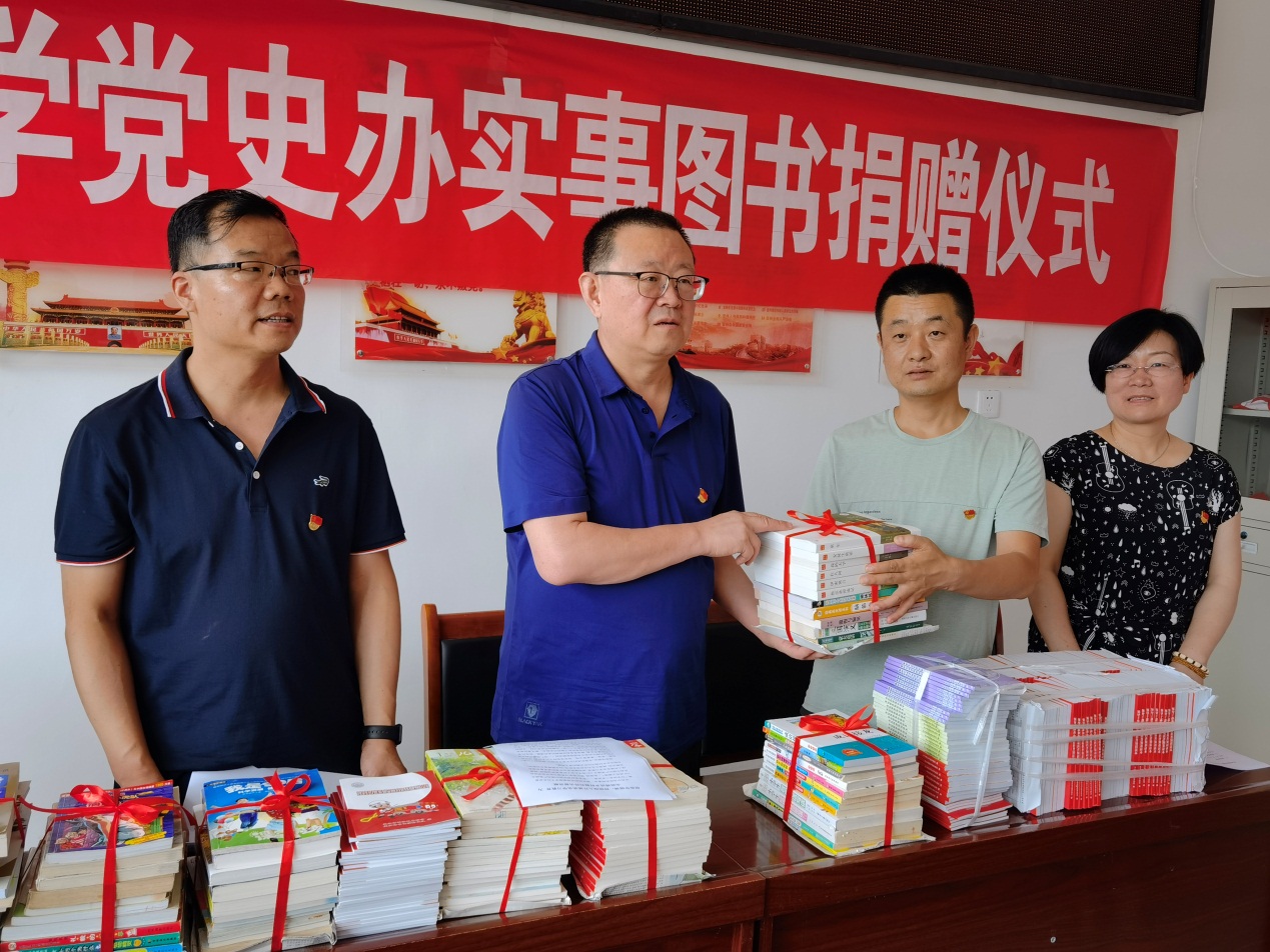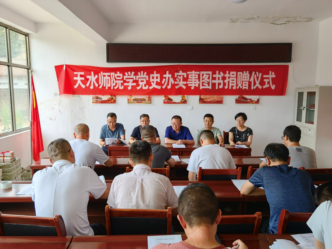 主题党日开始前还举行了天水师范学院学党史办实事图书捐赠仪式,王旭林代表学校为何沟村捐赠了1300多册党史、农技、文学等方面的图书。