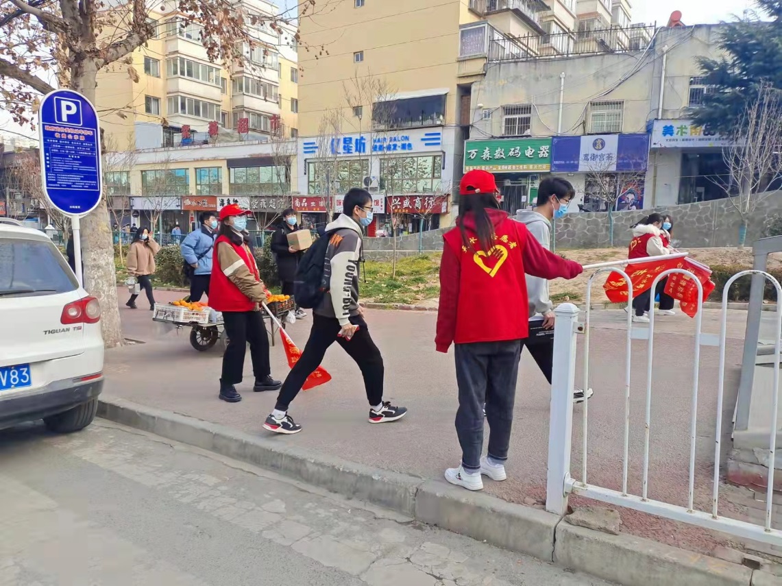 12月3日早上8:00,太阳成集团tyc7111cc主页20余名青年志愿者统一着装在新北门集合,由党总支书记王小芳、党总支副书记刘正带队,前往划定区域开展创城“包街”活动。