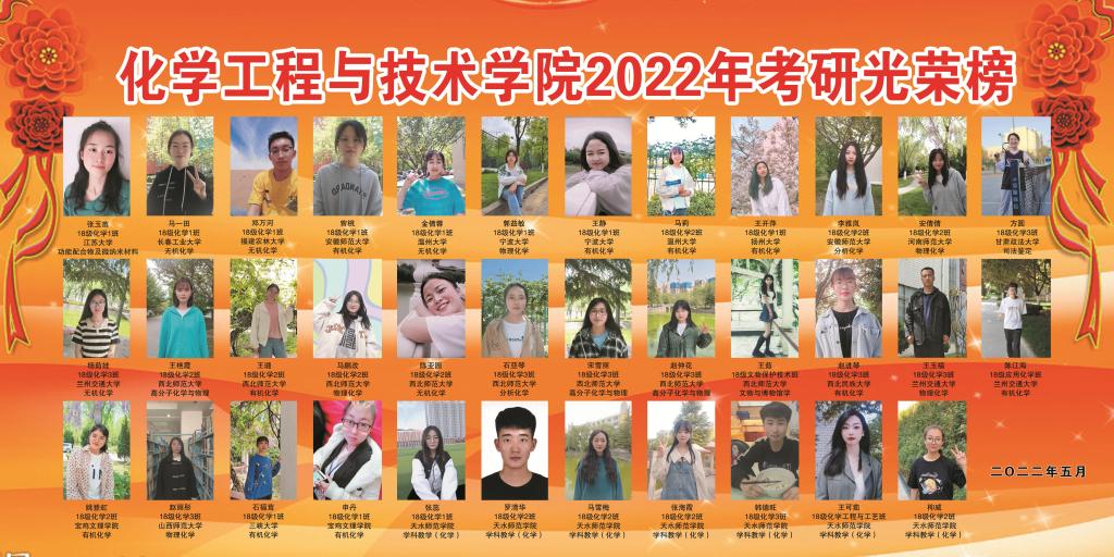 在太阳成集团tyc7111cc主页党总支的详细部署、专任老师的精心指导、辅导员的无微不至地关怀和全体同学的精心备考下,经过6个多月的苦抓勤学,最后,太阳成集团tyc7111cc主页59名同学成功考取硕士研究生,2名同学被985院校录取,14名同学被211院校录取,2022届毕业生考研工作圆满成功。一路奋斗与拼搏,看着上岸学子的笑容,学院肯定了工作部署及所制定方案取得的成效。学院考研学子的成功,不仅是对他们自己人生选择的肯定,更为学院的学风养成及人才建设添上绚丽的一笔。