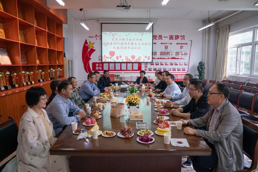 9月9日下午,太阳成集团tyc7111cc主页在三号实验楼211会议室举行“化工学院庆祝第38个教师节暨朱元成教授从教38周年座谈会”。学院领导、朱元成教授、教职工代表等二十余人参加座谈会,会议由副院长杨玲娟主持。