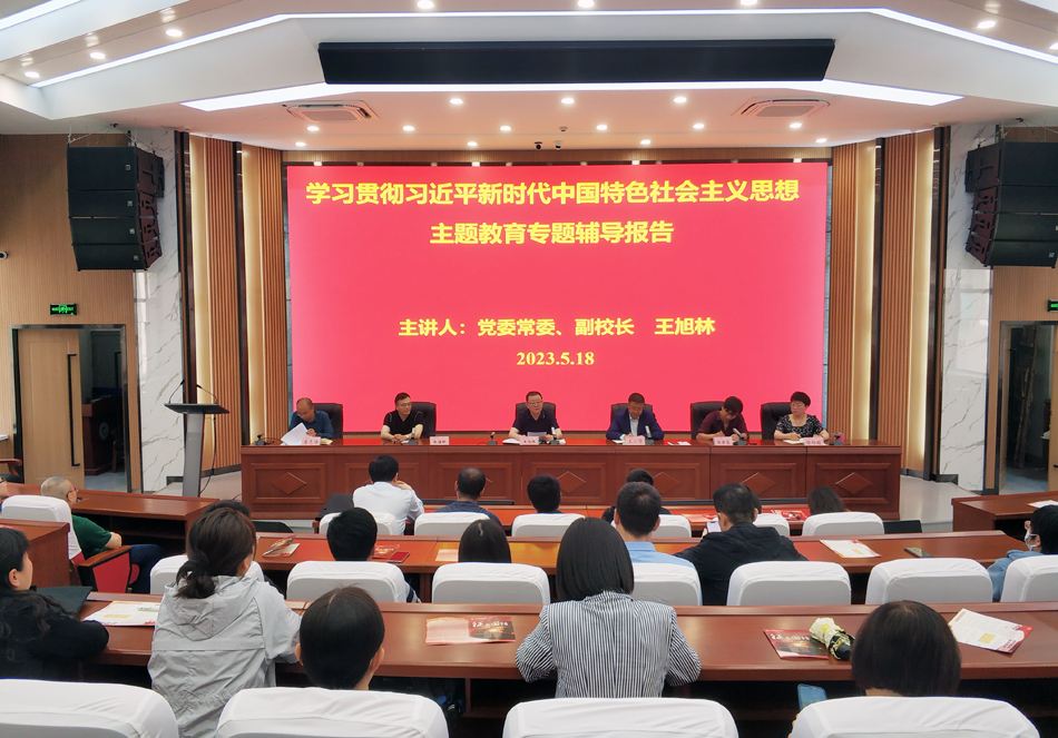 5月18日下午,党委常委、副校长王旭林为太阳成集团tyc7111cc主页全体教职工作学习贯彻习近平新时代中国特色社会主义思想主题教育专题辅导报告。
