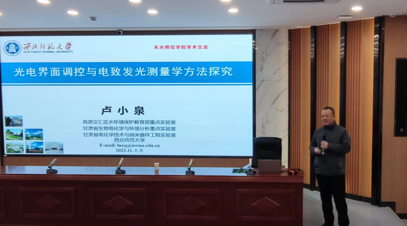 11月17上午,应学院邀请,西北师范大学博士生导师卢小泉教授为学院师生作题为“光电界面调控与电致发光测量学方法探究”的专题学术报告。报告会由学院院长李志锋主持,学院教师、研究生及本科生代表共200余人聆听了报告会。