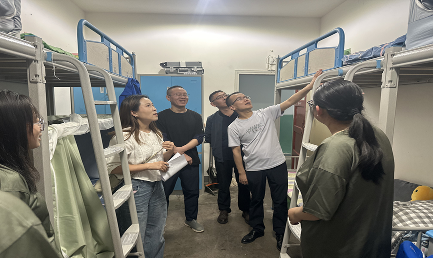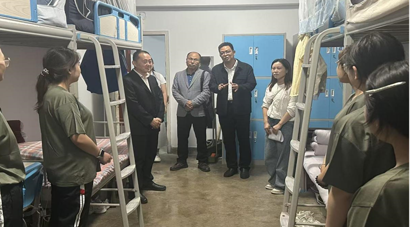 为帮助2025级新生更快适应大学宿舍生活,解决新生们遇到的困难。9月8日晚,学校党委常委、副校长左国防、学院领导班子带领辅导员、研究生秘书和新生班主任前往新生宿舍进行走访慰问,为初入校园的新生送去温暖与指引。